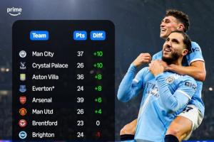 曼城、水晶宫相较上赛季同期多拿了10个积分,是进步最大的两支球队。而维拉、埃弗顿则多拿了8分,阿森纳、曼联分别多拿6分和4分。